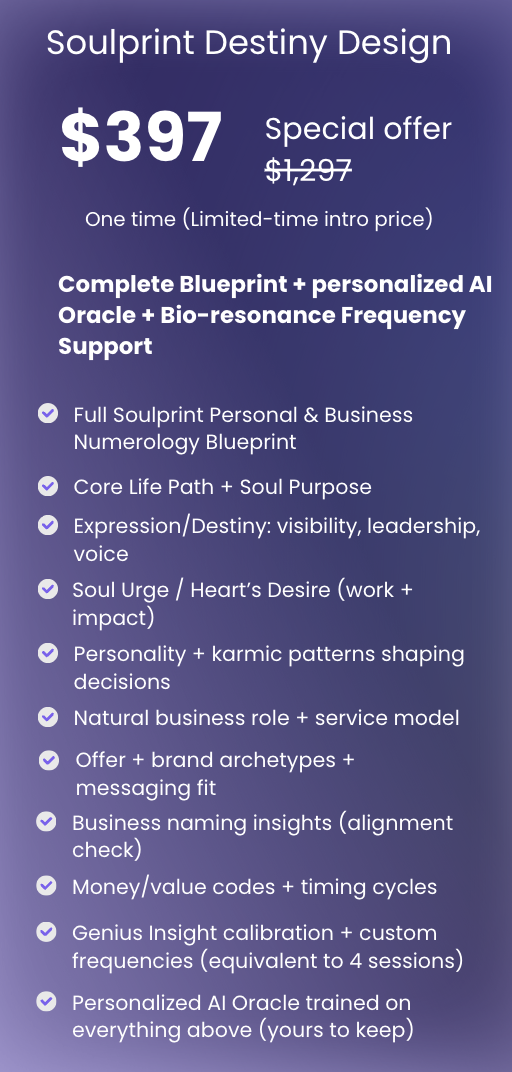 This founding round allows me to refine the full Soulprint Destiny Design experience before its official launch.